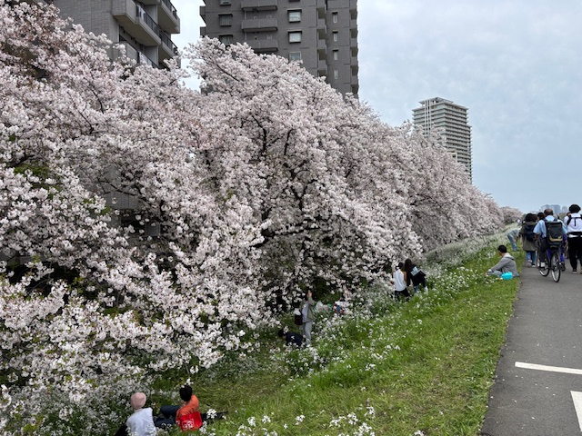 ちょうど通った多摩川の桜がとても綺麗でした。